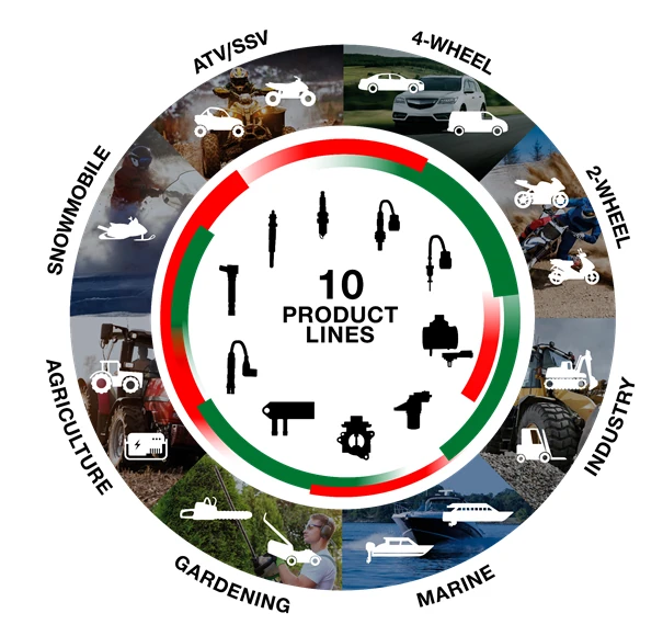 Čtyři trhy, deset produktových řad, 60 000 aplikací a jediná volba: Niterra nabízí široký výběr produktů od vozů po motorky, od malých motorů po lodě s pokrytím trhu přes 90 %%.